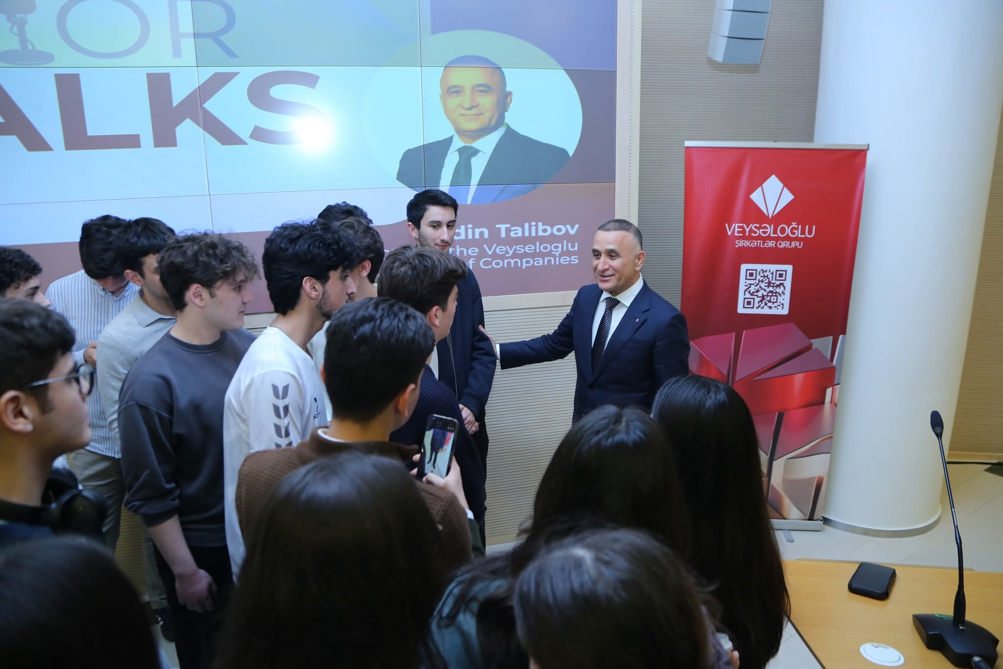 “Senior Talks” çərçivəsində çıxış edən Aydın Talıbov Veysəloğlu Şirkətlər Qrupunun formalaşma və inkişaf mərhələləri, strateji baxış, liderlik prinsipləri və korporativ idarəetmə modeli haqqında ətraflı məlumat verib. O, həmçinin böyük pərakəndə və distribusiya şəbəkəsinin idarə olunmasında operativ qərarvermə, komanda işi və insan kapitalının roluna toxunub.