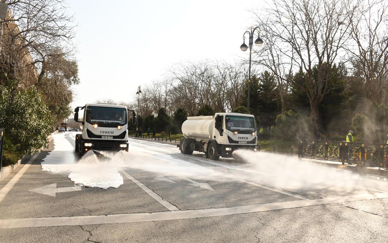 Məlumata görə, bu gün səhər saatlarından etibarən Bakı Şəhər İcra Hakimiyyətinin kommunal təsərrüfat xidmətlərinin texnikası tərəfindən şəhərin 537 əsas küçə və prospektlərin yuyucu maddələrlə yuyulmasını təmin edilib. Eyni zamanda, genişmiqyaslı təmizlik və abadlıq işləri həyata keçirilib.