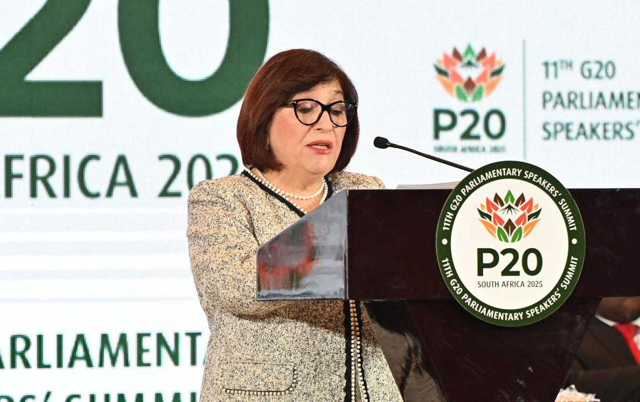 Milli Məclisin sədri Sahibə Qafarova Cənubi Afrikaya işgüzar səfəri çərçivəsində “Böyük iyirmilik” ölkələrinin (G20) Parlament Sədrlərinin 11-ci Sammitində (P20) “Fəlakətlərə qarşı dayanıqlığın və cavab tədbirlərinin gücləndirilməsi” mövzusu üzrə çıxış edib.