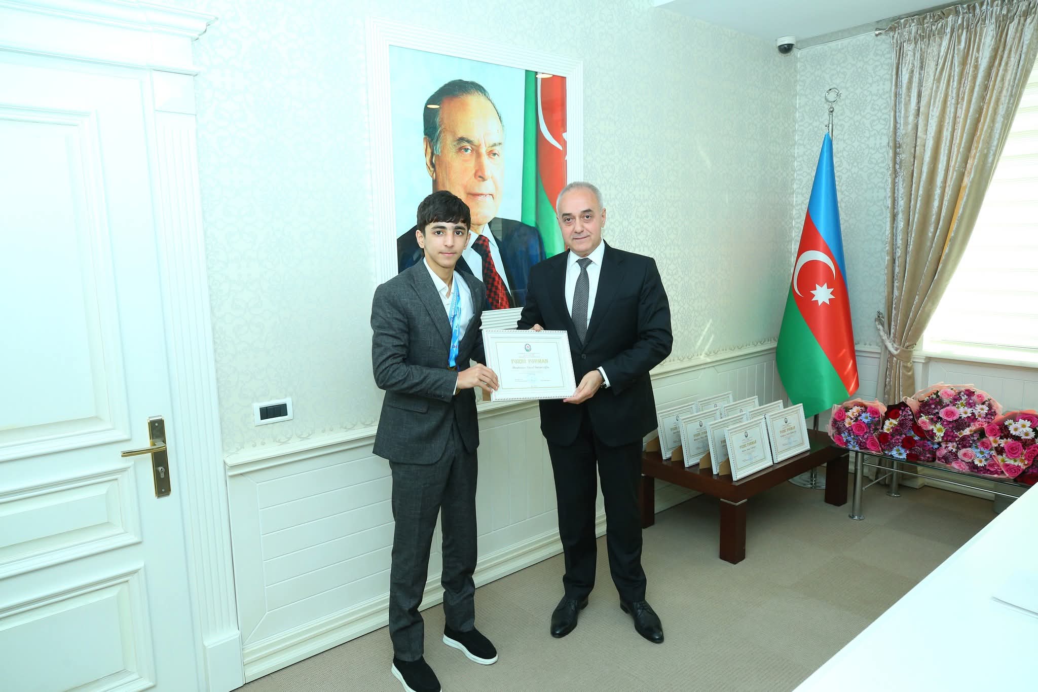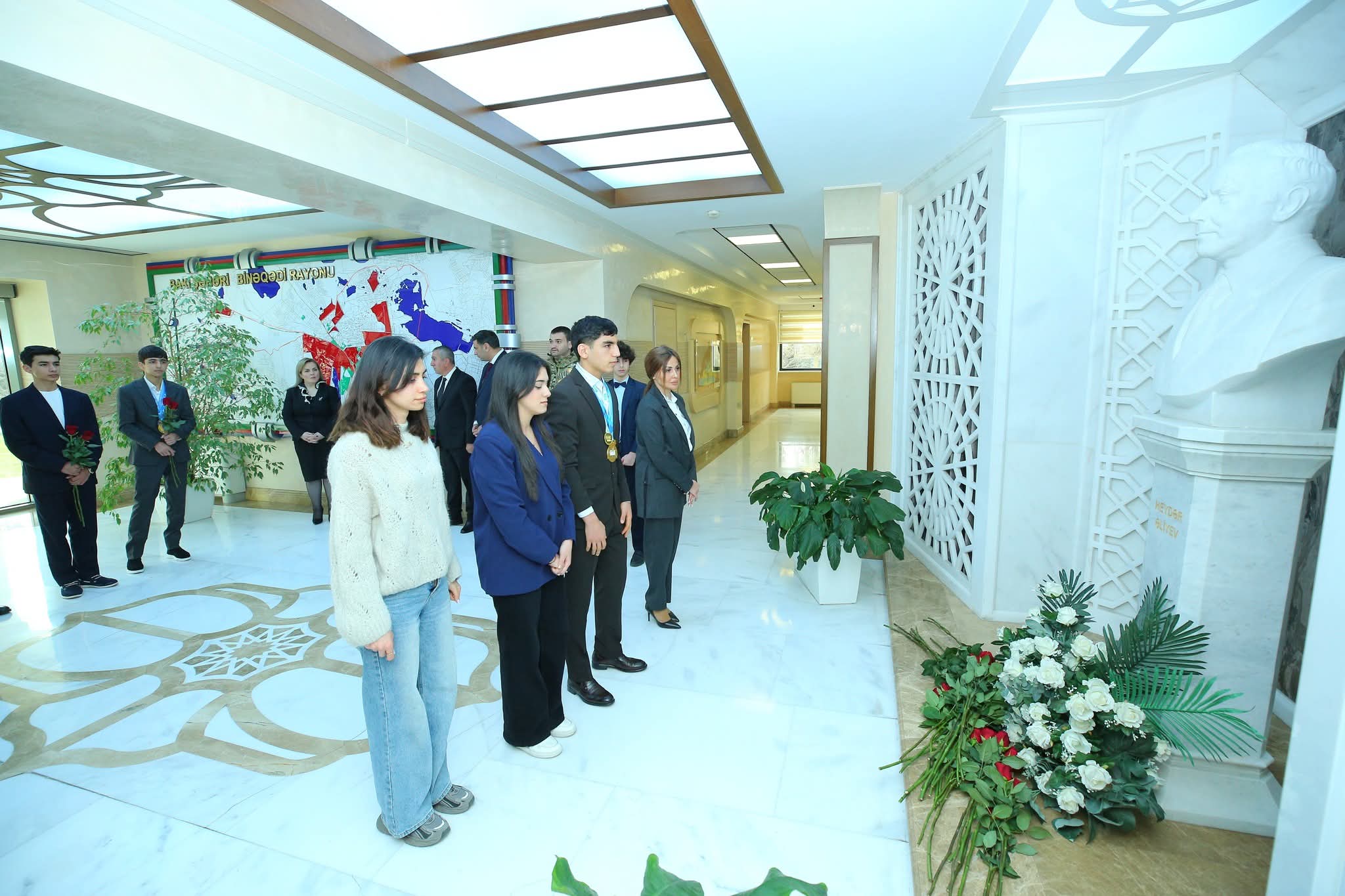 Tədbirdən öncə iştirakçılar Ümummilli Lider Heydər Əliyevin büstü önünə gül dəstələri qoyaraq əziz xatirəsini ehtiramla yad etdilər.
